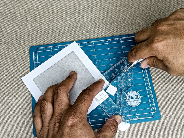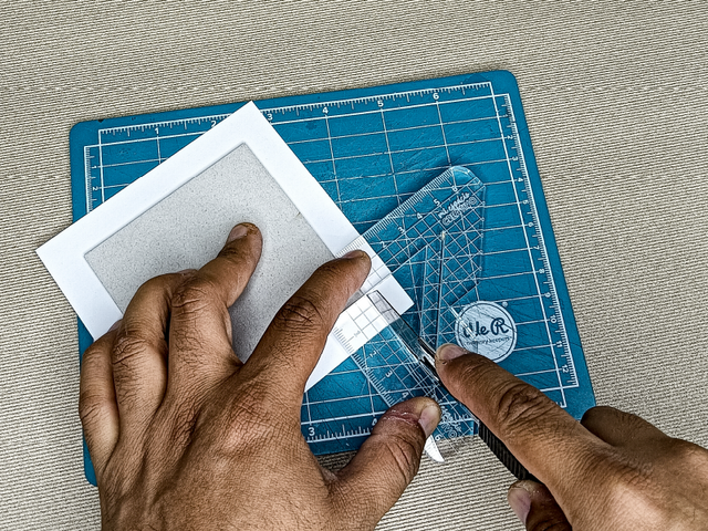 (Foto referencial) Su tope en forma de L nos ayuda a realizar un corte preciso, recto en formato mini 4.5x5.5cm y 5.5x5.5cm