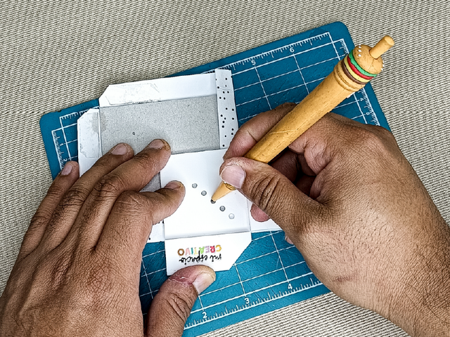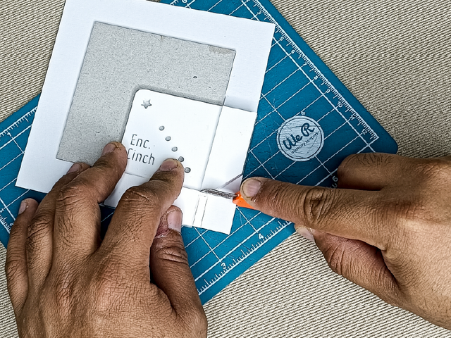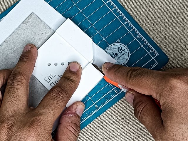 Facilita el corte de las pestañas del forrado interno de las cajas.