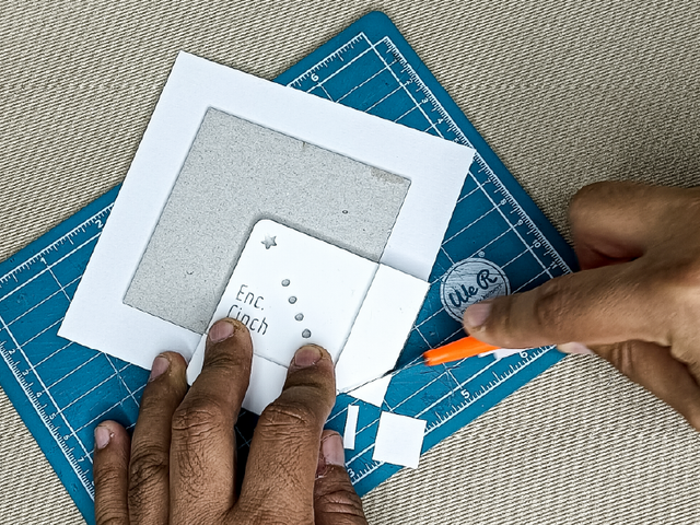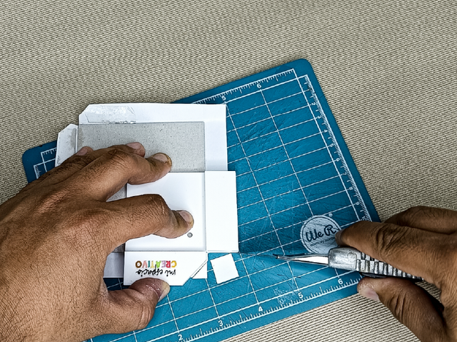 (Foto referencial) Su tope en forma de L nos ayuda a realizar un corte preciso, recto en formato de tapa 8.5x8.5cm y taco 8x8cm