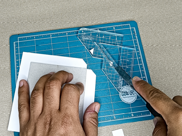 (Foto referencial) Su tope en forma de L nos ayuda a realizar un corte preciso, recto en formato de A7